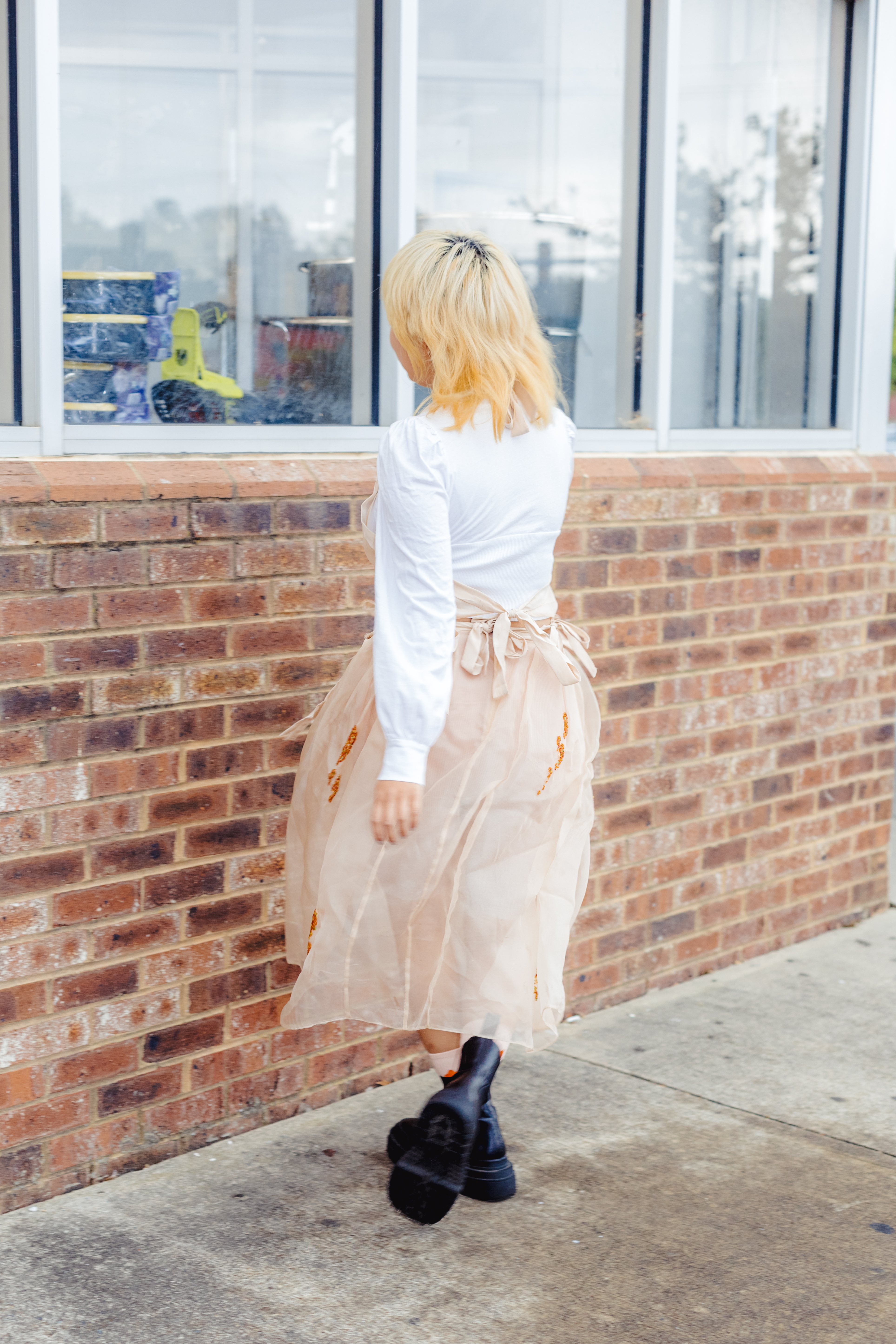 Apron style dress, construction inspired by the volume of the traditional Filipino